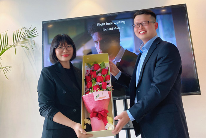 接著,來自國(guó)內(nèi)市場(chǎng)部的Victoria Wang深情地演唱了韓語版的《l Believe 》。每個(gè)人沉浸在她凄婉動(dòng)人的歌聲中的同時(shí),也驚嘆于她對(duì)韓語的準(zhǔn)確發(fā)音,演唱完畢,現(xiàn)場(chǎng)爆發(fā)熱烈的掌聲,大家由衷地為她豎起了大拇指!