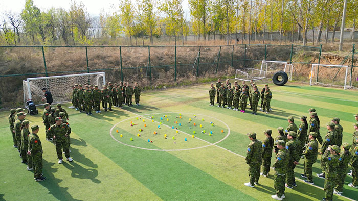 在教練的指導下,大家首先熟練了站軍姿,集合解散等列隊項目,隨后榮盛全體伙伴劃分為穿云隊——“一支穿云箭,千軍萬馬來相見”、躺贏隊 ——“躺贏躺贏,躺著就贏”、超越隊——“超越di一,永遠wu敵”、戰狼隊——“戰狼出征,寸草不生”四個小隊。大家一個個精神抖擻,躍躍欲試,對接下來的訓練充滿了熱情與期待。