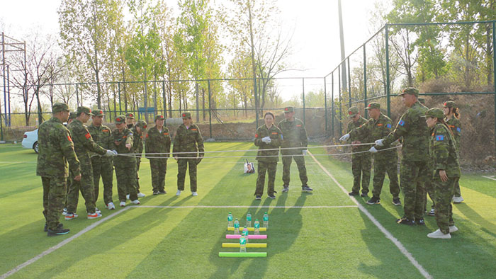 在【雷區取水】項目里,大家真正領略到團隊協作的重要性。在這個項目中,要求每個團隊在不接觸地面的條件下,力爭用更短的時間取得在直徑五米的雷區中的水源,且每次取水要使用不同的方法。在這緊張的pk時刻里,每個隊伍都能快速達成共識,全力以赴不放棄,直面問題積ji思索,不斷地研討問題解決的辦法;每個成員都能克服心理及現實障礙,敢于嘗試、挑戰自我,大家通過相互之間的協作配合,發揮出團隊真實的力量,圓滿地完成了取水任務。