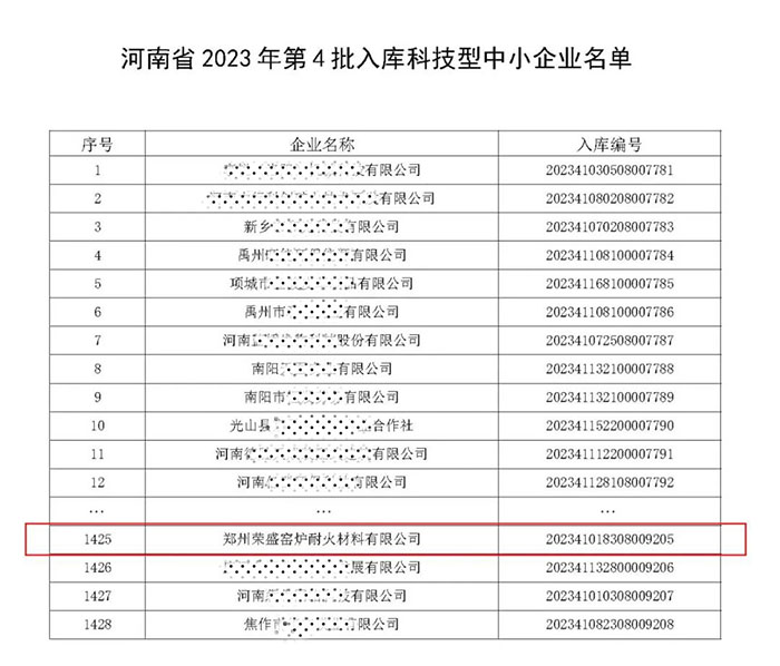 喜訊!榮盛耐材成功入庫「科技型中小企業」
